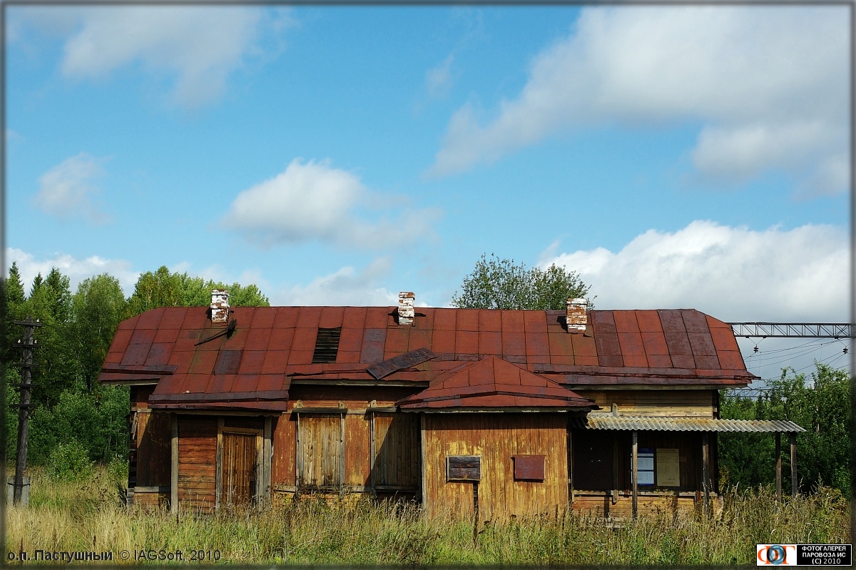 | Станционное здание, о.п. Пастушный, перегон Шаля - Сарга, Шалинский городской округ, Свердловская обл. Автор: IAGSoft | Фото сделано 28.VIII.2010, опубликовано 17.XII.2010.