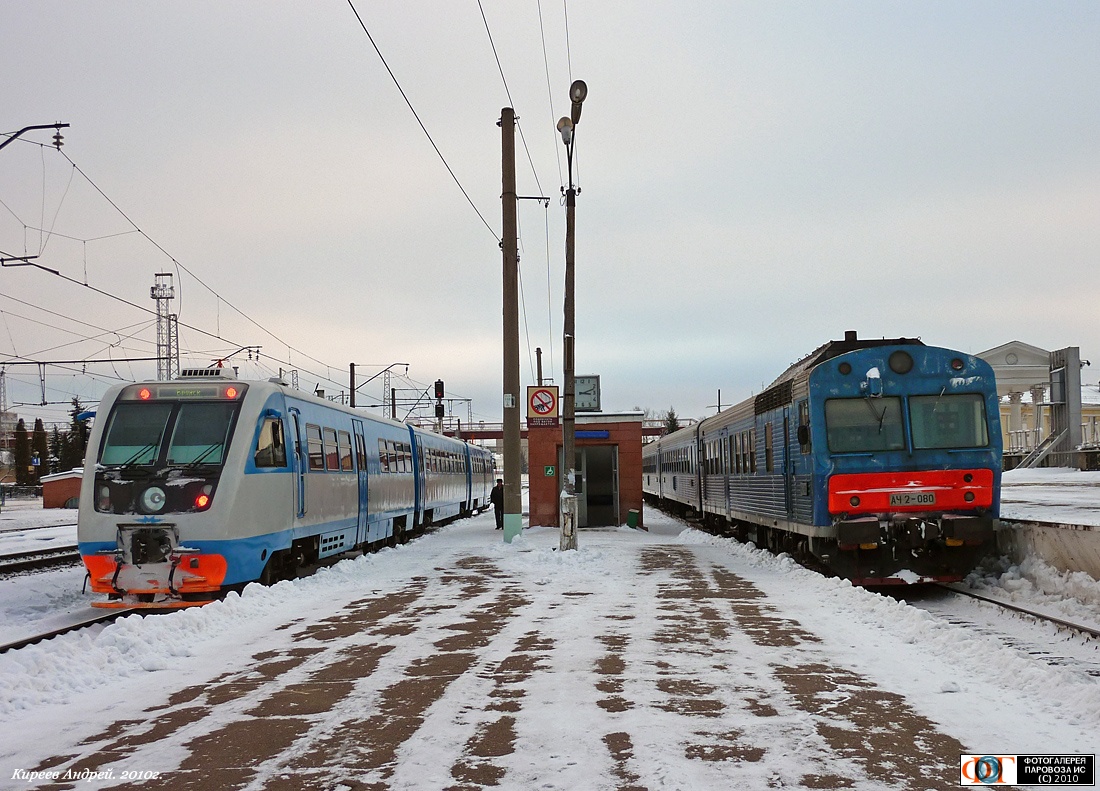 | Рельсовый автобус РА2-067 и автомотрисы АЧ2-080/АЧ2-069 в составе дизель поезда, ст. Орёл, Орловская обл. Автор: Киреев Андрей | Фото сделано 30.XII.2010, опубликовано 4.I.2011.