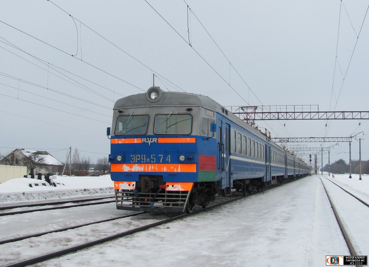 "Уходящему в след". Электропоезд ЭР9М-574 сообщением Брест - Минск, станция Тевли, Брестская обл.