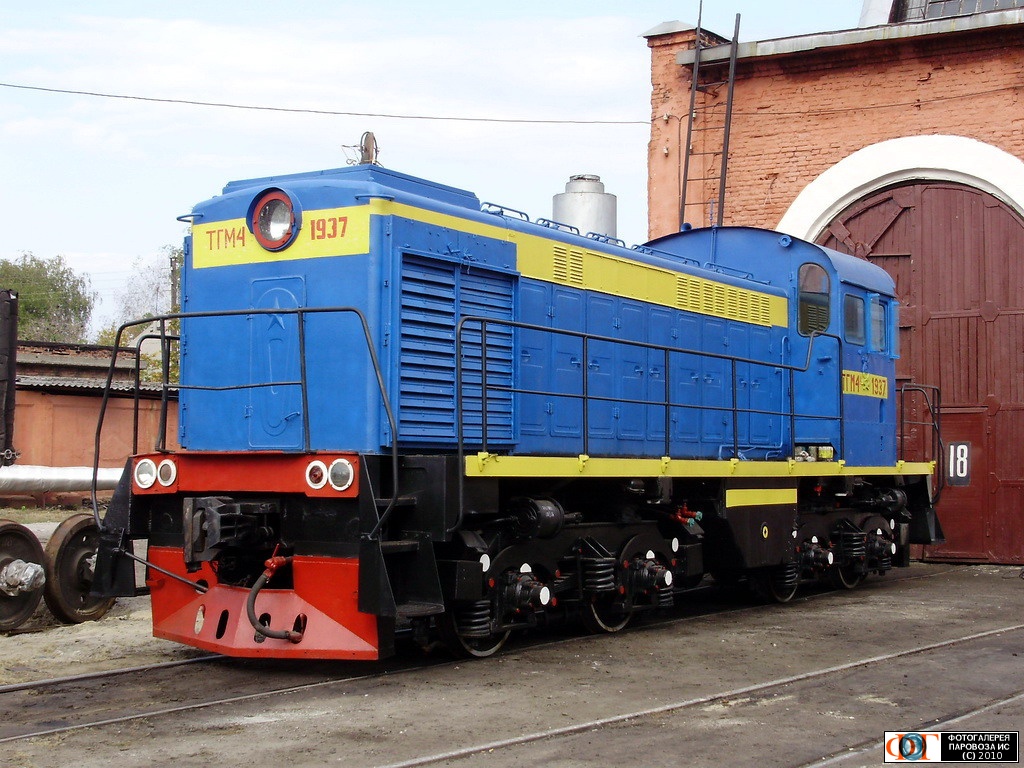 | Тепловоз ТГМ4-1937 в депо Основа (ТЧ-3) ЮЖД, Харьковская обл. Автор: Алексей Краснов | Фото сделано 5.X.2008, опубликовано 13.I.2011.
