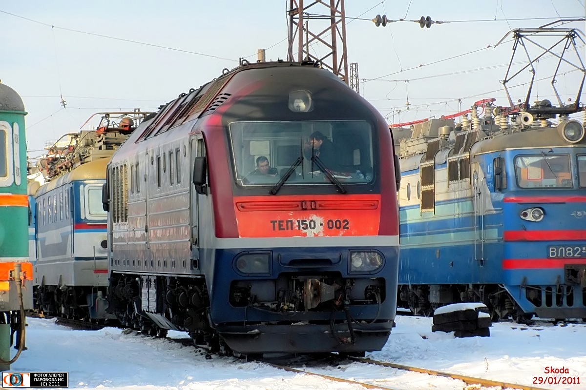 | Тепловоз ТЭП150-002, депо Харьков-Октябрь, Харьковская обл. Автор: Skoda | Фото сделано 29.I.2011, опубликовано 1.II.2011.