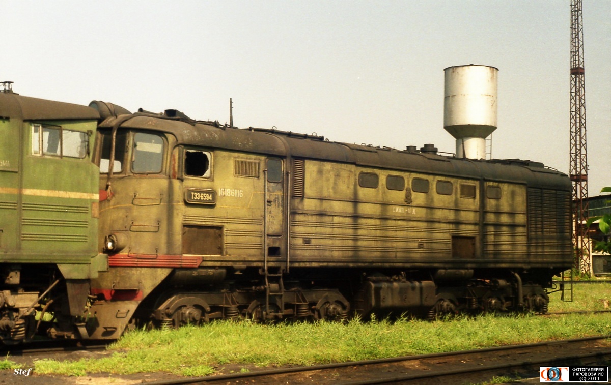 | Тепловоз ТЭ3-6594Б в депо Тихорецкая, Краснодарский край Автор: Stef | Фото сделано 13.VI.1999, опубликовано 21.II.2011.
