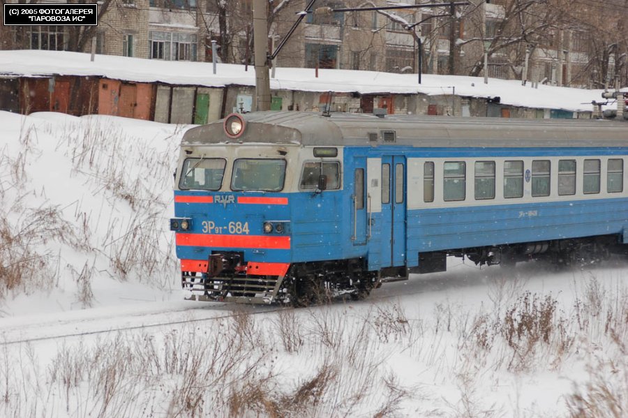 | Электропоезд ЭР9Т-684 { ER9T-684 EMU train }, перегон Князевка - Саратов-III { Knyazevka - Saratov-III stretch }, Саратовская обл. Автор: Айдаров Д. | Фото сделано 5.III.2006, опубликовано 30.III.2006.
