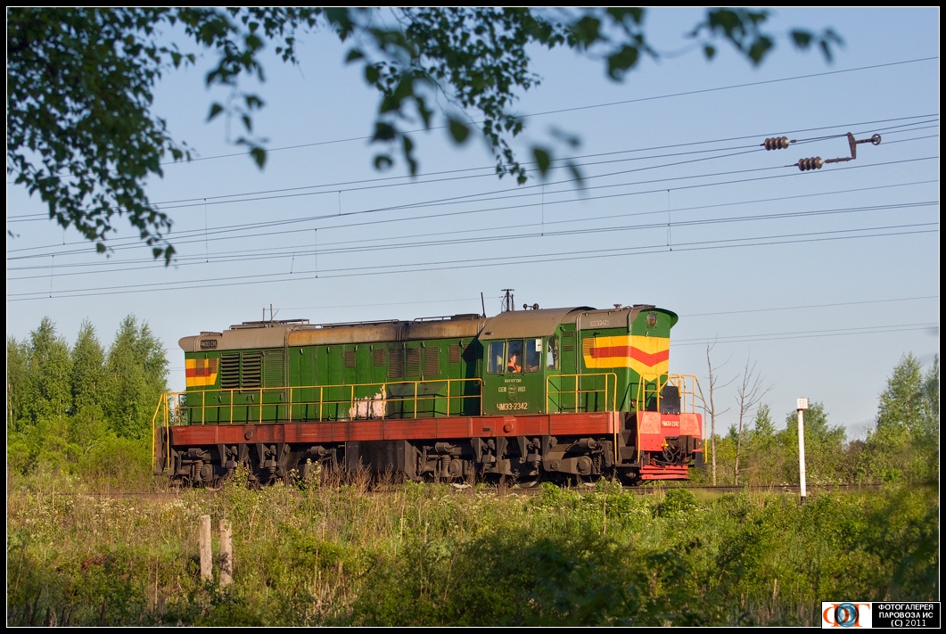 | Тепловоз ЧМЭ3-2342 на перегоне Рыбкино - Пост 499 км, Вологодская обл. Автор: Илья Семёнов | Фото сделано 7.VI.2009, опубликовано 20.IV.2011.
