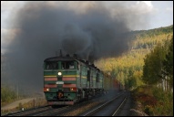 | Тепловоз 2М62-0434 с хозяйственным поездом на перегоне Седловая - Адриановка, линия Тарская - Забайкальск, Забайкальский край Автор: Баландин Д. | Фото сделано 10.IX.2009, опубликовано 24.VI.2011.