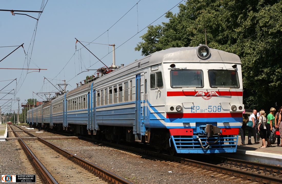 | Электропоезд ЭР9М-508 на станции Шостка, Сумская обл. Автор: Вячеслав | Фото сделано 20.VII.2011, опубликовано 22.VII.2011.
