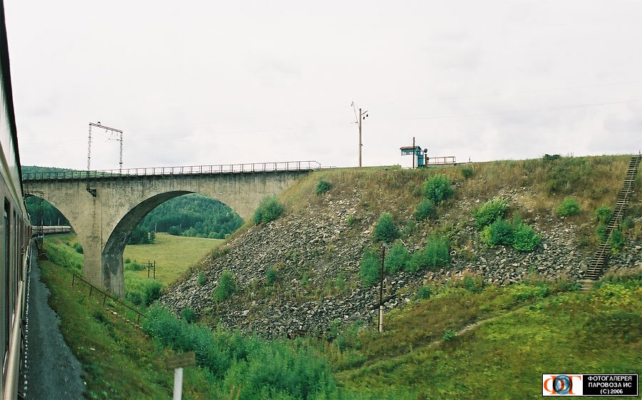 | Виадук в Рябиновом Логу { Viaduct at Ryabinovy Log }, Красноуфимск { Krasnoufimsk }, Свердловская обл. Автор: Михайлов Виктор | Фото сделано 20.VIII.2003, опубликовано 4.V.2006.