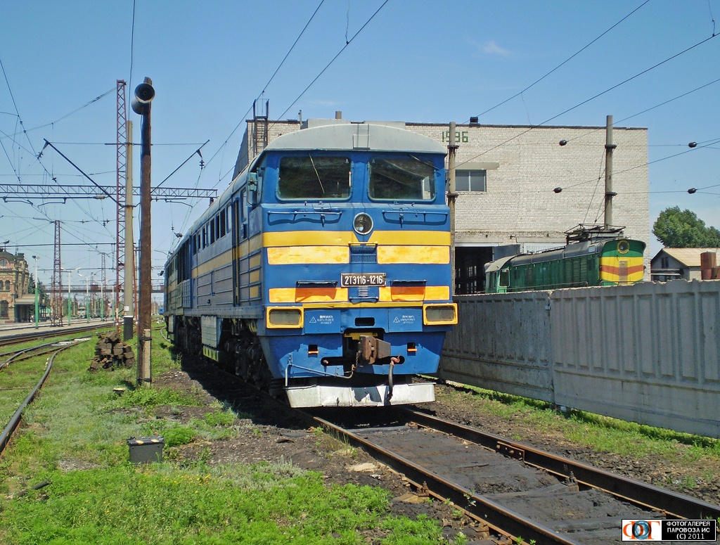 | Тепловоз 2ТЭ116-1216 на станции Дебальцево, Донецкая обл. Автор: CraZy Man | Фото сделано 14.VII.2011, опубликовано 28.VIII.2011.