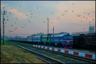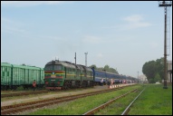 | Тепловоз ЧМЭ3Т-7238 производит маневры по ст. Каменец-Подольский ЮЗЖД, Хмельницкая обл. Автор: ВикторБГ | Фото сделано 21.VIII.2011, опубликовано 28.VIII.2011.