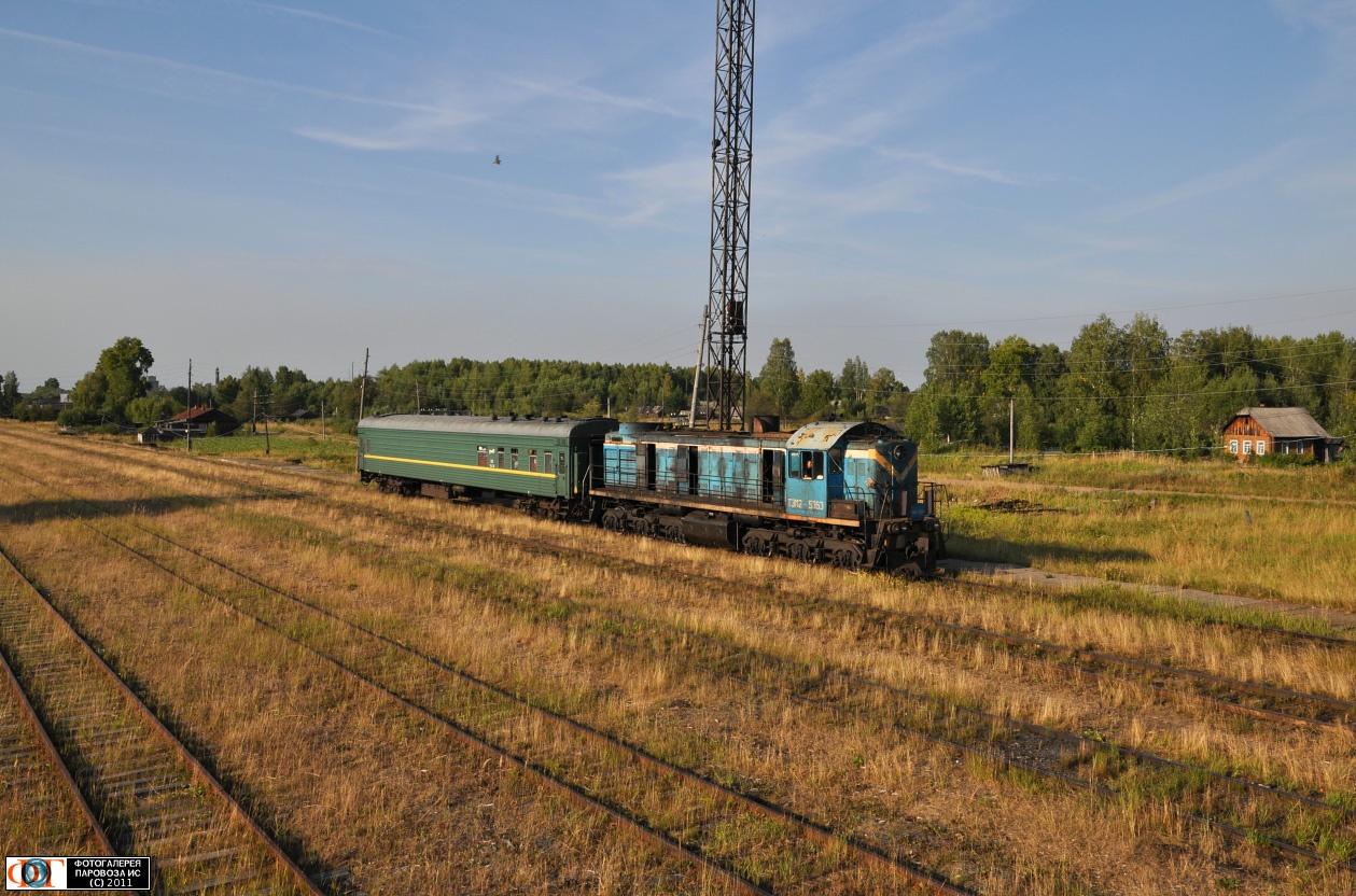 Тепловоз ТЭМ2-5353 с вагоном для спецконтингента, ст. Верхнекамская, Гайно-Кайская железная дорога, Кировская обл.