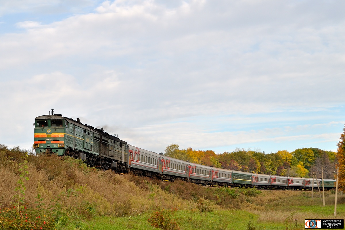 | Тепловоз 2ТЭ10М-3251 с пассажирским поездом на перегоне Грунин Воргол - Становая, Липецкая обл. Автор: foboz | Фото сделано 24.IX.2011, опубликовано 29.IX.2011.