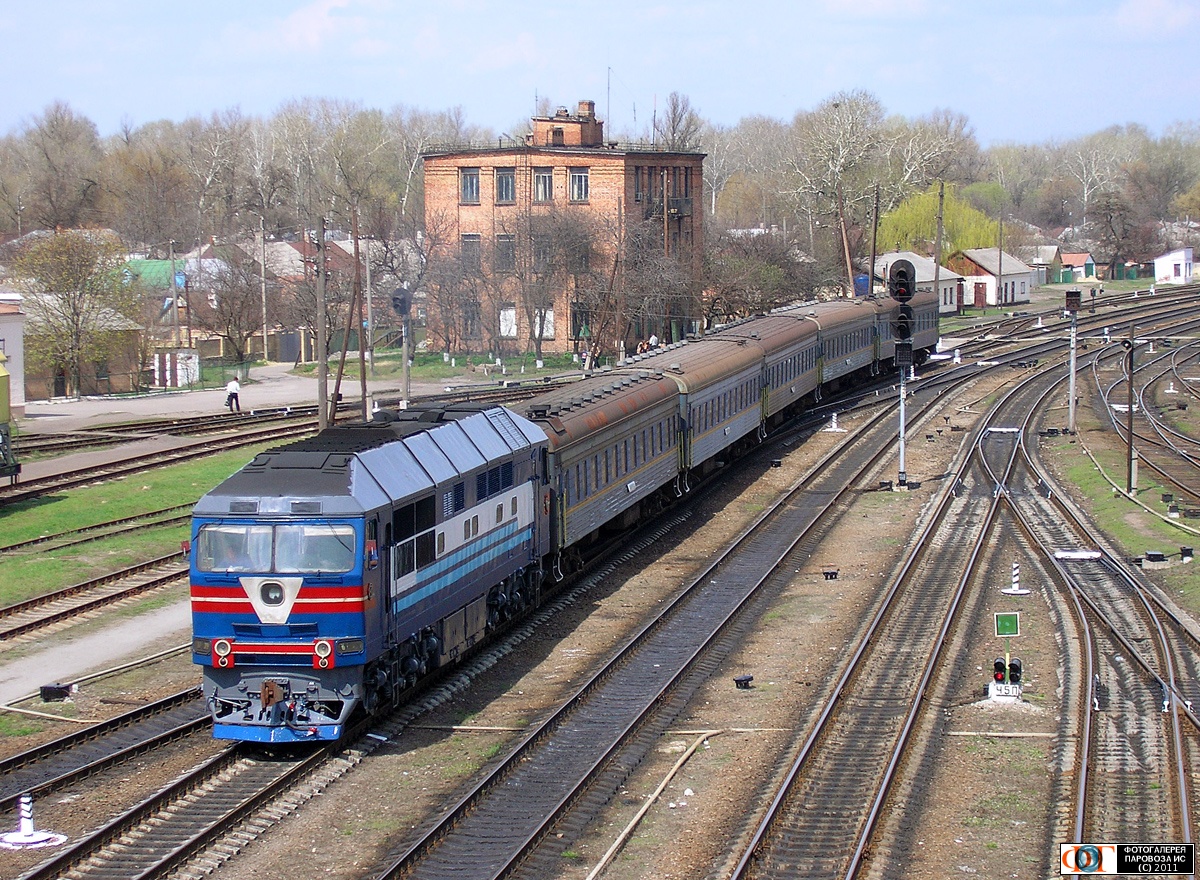 | Тепловоз ТЭП70-0094 с пригородным поездом Харьков - Полтава на станции Полтава-Южная ЮЖД, Полтавская обл. Автор: Алексей Краснов | Фото сделано 21.IV.2006, опубликовано 15.X.2011.