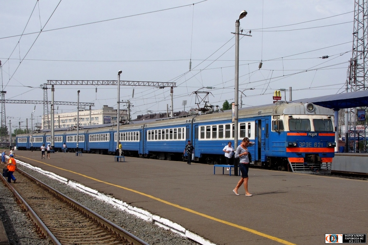 | Электропоезд ЭР9Е-621 на станции Казань, Татарстан Автор: Ирина | Фото сделано 17.V.2010, опубликовано 23.X.2011.