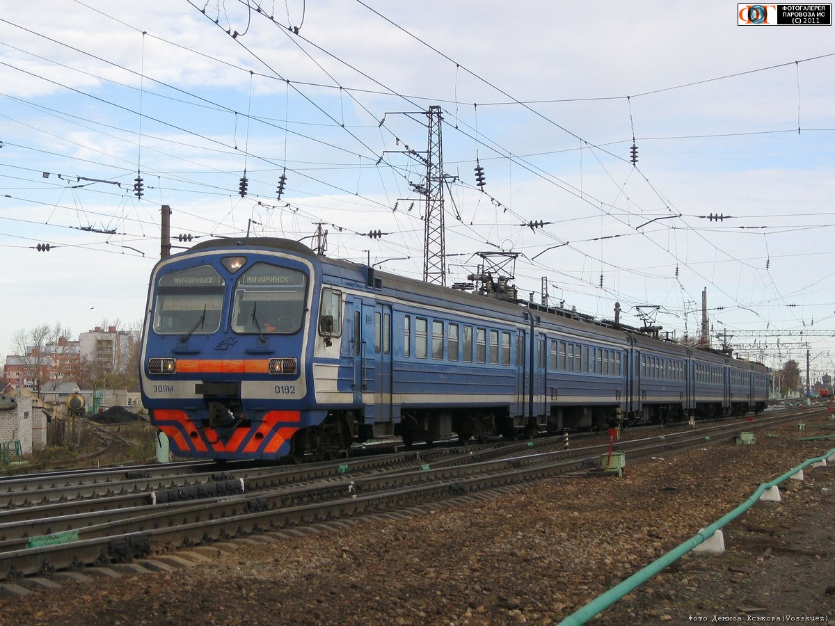 | Электропоезд ЭД9М-0182 на ст. Рязань-II, Рязанская обл. Автор: Денис Еськов | Фото сделано 4.XI.2011, опубликовано 8.XI.2011.