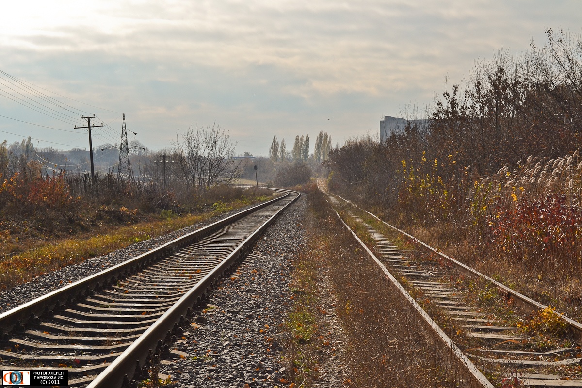 | Расхождение путей перегона Каменец-Подольский - Ленковцы (налево) и подъездного пути ППЖТ (прямо) в районе четного предупредительного светофора, Хмельницкая обл. Автор: ВикторБГ | Фото сделано 7.XI.2011, опубликовано 10.XI.2011.