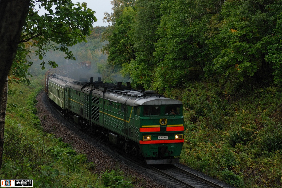 | "Заповедная вэшка". Тепловоз 2ТЭ10В-4818 с хозяйственным поездом, перегон Вандан - Форель, линия Волочаевка - Комсомольск-на-Амуре, Хабаровский край Автор: Баландин Д. | Фото сделано 15.IX.2011, опубликовано 18.XI.2011.