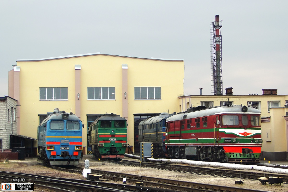 | Тепловозы 2М62У-0196, 2ТЭ116-1396А, 2ТЭ116-1242Б, ТЭП60-0632 возле цеха ТО-3, локомотивное депо Гомель, Гомельская обл. Автор: oleg-BY | Фото сделано 3.XII.2011, опубликовано 4.XII.2011.