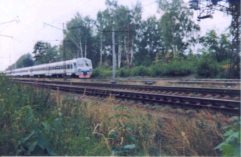 | Электропоезд ЭД4МК-0026 { ED4MK-0026 EMU train }, участок Томилино - Красково { Tomilino - Kraskovo section }, Московская обл. Автор: 378 | Фото сделано VIII.2001, опубликовано 26.XI.2001.