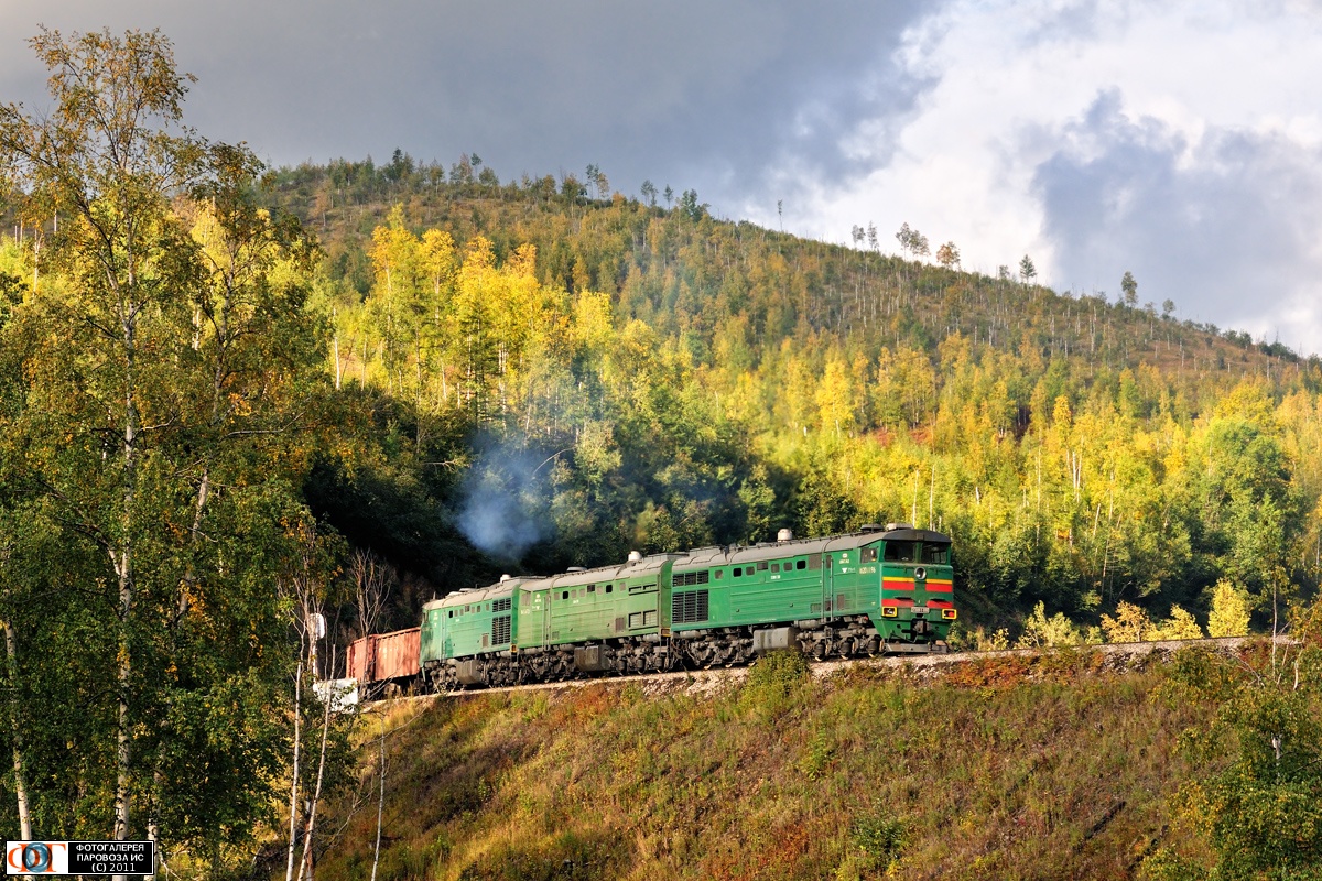 Тепловоз-толкач 3ТЭ10МК-3060 на перегоне Откосная - Кузнецовский, Хабаровский край