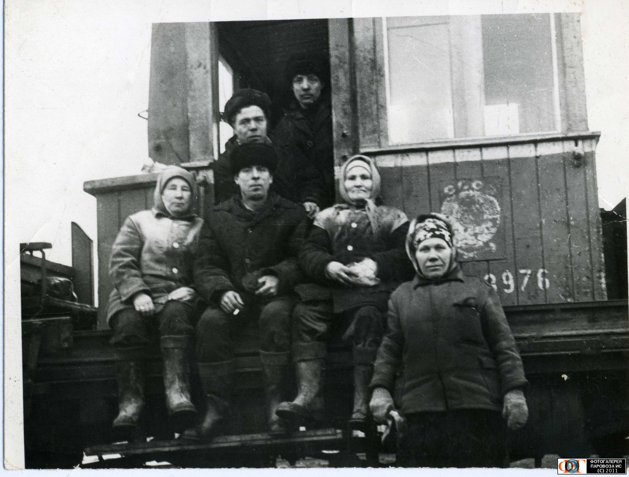 | Железнодорожники на фоне дрезины АГМУ-3976. Красноуральский медеплавильный комбинат, Павлодарская область Автор: Иванцов М. (колл.) | Фото сделано 19??, опубликовано 25.XII.2011.
