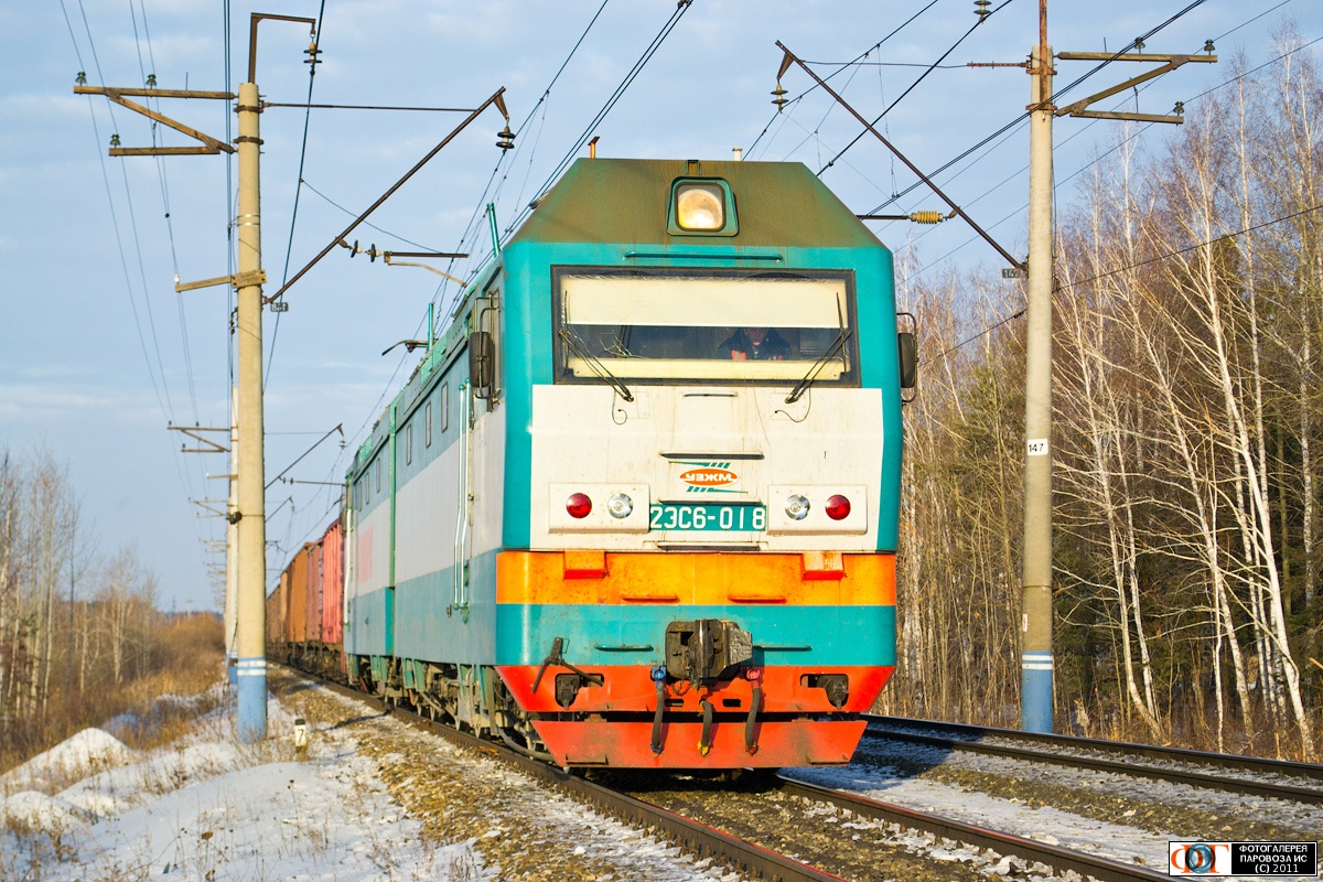 | Электровоз 2ЭС6-018 (ТЧЭ-5 Свердловск-Сорт.), перегон Войновка - Озеро Андреевское Свердловской ж.д., Тюменская обл. Автор: Зайнуллин Ринат | Фото сделано 24.XII.2011, опубликовано 25.XII.2011.