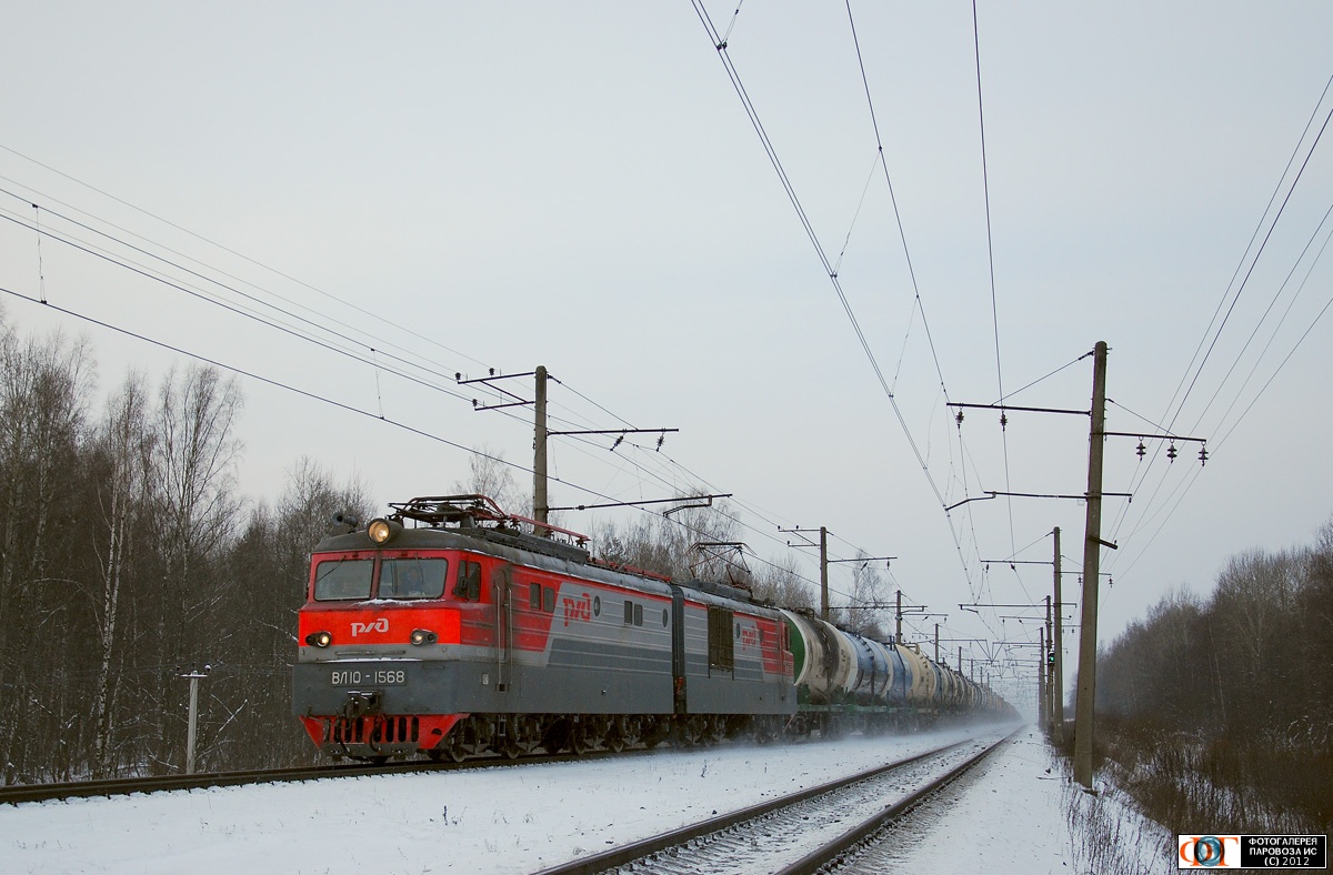 | Электровоз ВЛ10-1568, перегон Мга - Назия, Окт.ж.д, Ленинградская обл. Автор: Sedoy | Фото сделано 21.I.2012, опубликовано 26.I.2012.