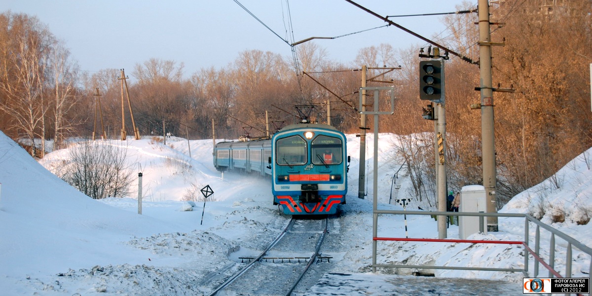 | Электропоезд ЭД9М-0033 прибывает на о.п. Новаторов, перегон рзд. Компрессорный - Ометьево, Татарстан Автор: Антон | Фото сделано 23.II.2012, опубликовано 3.III.2012.