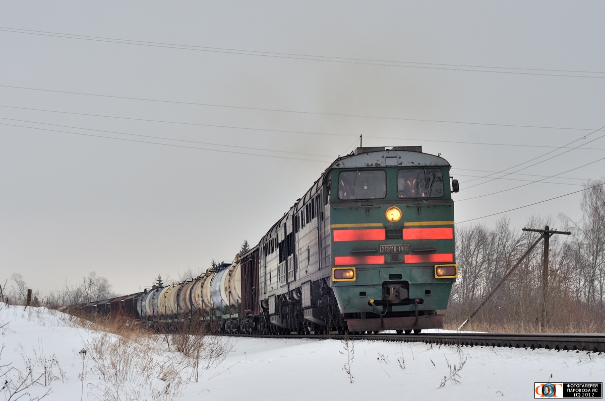 Тепловоз 2ТЭ116-1481 с грузовым поездом, перегон Шаховская - Муриково