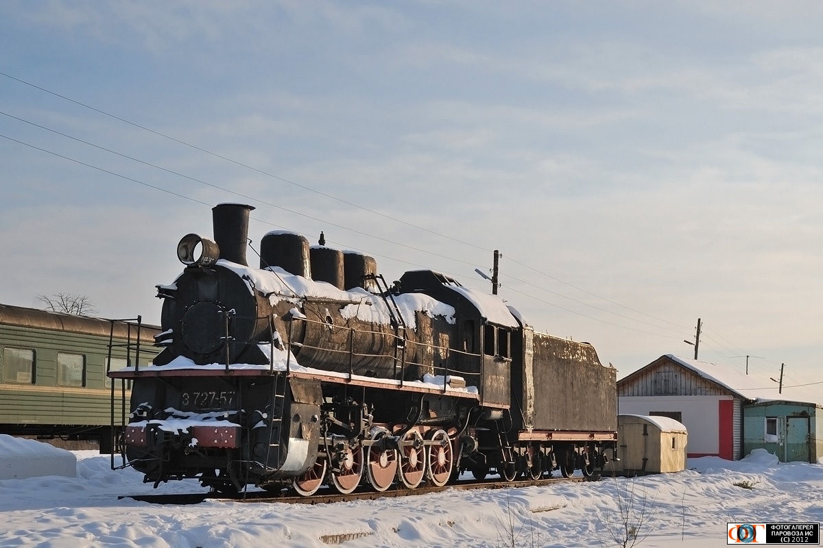 | Паровоз-памятник Эм727-57, ст. Углич, Ярославская обл. Автор: Баландин Д. | Фото сделано 18.II.2012, опубликовано 26.III.2012.