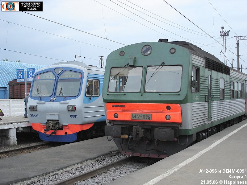 | АЧ2-096 и ЭД4М-0091 { ACh2-096 and ED4M-0091 }, Калуга-I { Kaluga-I }, Калужская обл. Автор: Воронин Андрей aka Happiness | Фото сделано 21.V.2006, опубликовано 27.VI.2006.