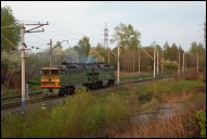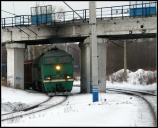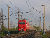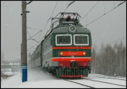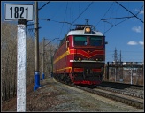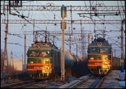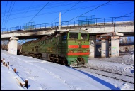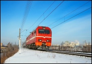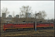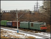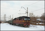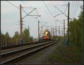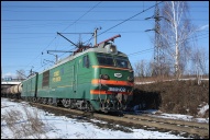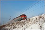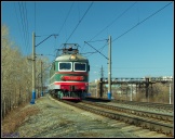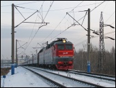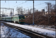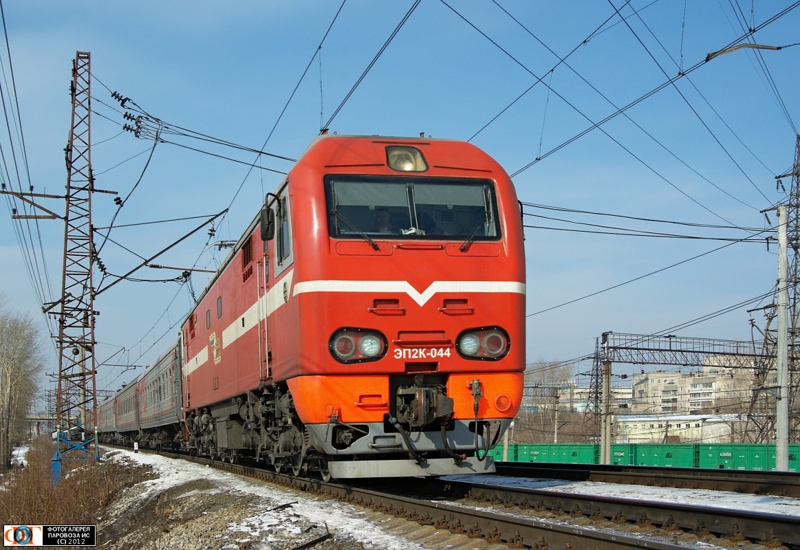 | Электровоз ЭП2К-044 с пассажирским поездом, перегон Шарташ - Путёвка, Екатеринбург, Свердловская обл. Автор: станция Шарташ | Фото сделано 14.III.2012, опубликовано 12.V.2012.
