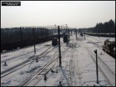 Электровоз ВЛ10У-924 с грузовым поездом следует по пути из парка "B" в парк "A" станции Бекасово-Сортировочное БМО