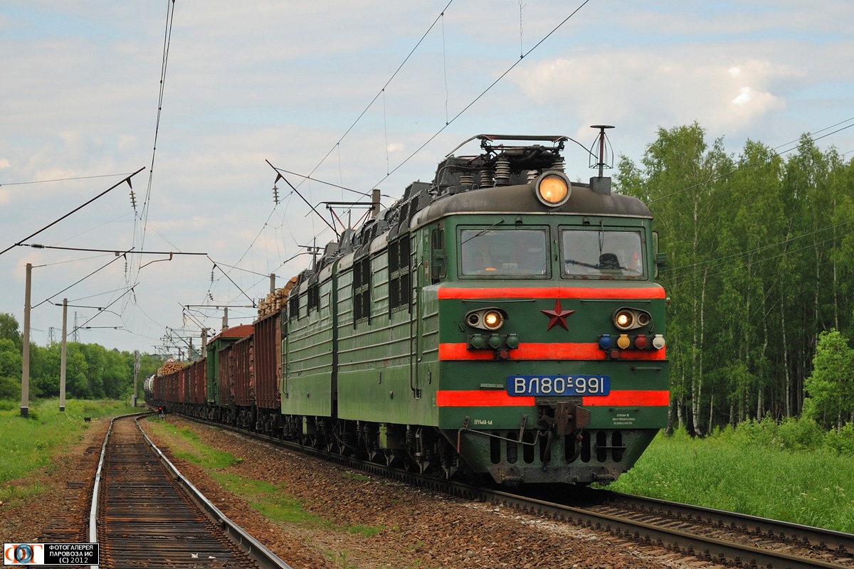 | Электровоз ВЛ80С-991 с грузовым поездом проследует рзд. 310 км, линия Арзамас - Нижний Новгород, Нижегородская обл. Автор: Баландин Д. | Фото сделано 2.VI.2012, опубликовано 16.VII.2012.