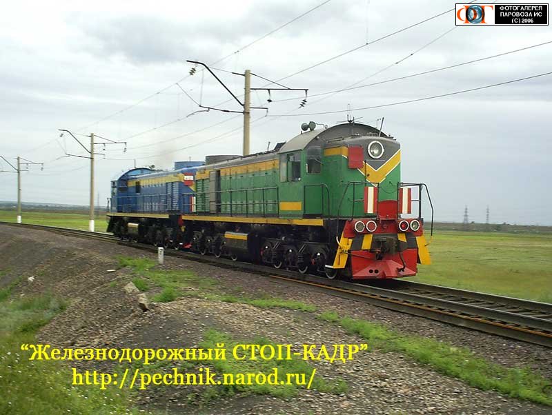 | ТЭМ2-5398 и безымянный ТЭМ2 { TEM2-5398 and one more TEM2 }, перегон Жана-Караганды – Караганда-Сорт. { Zhana-Karagandy – Karaganda-Sort. stretch }, Карагандинская область Автор: Уткин Михаил † | Фото сделано 15.VII.2006, опубликовано 22.VII.2006.