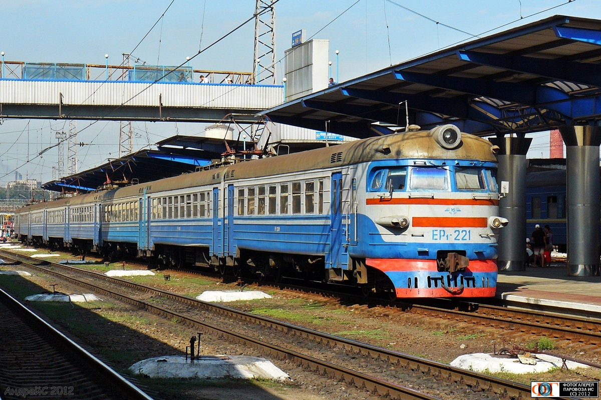 | Электропоезд ЭР1-221 на станции Днепропетровск, Днепропетровская обл. Автор: Андрей Сергеевич | Фото сделано 4.VIII.2012, опубликовано 27.VIII.2012.