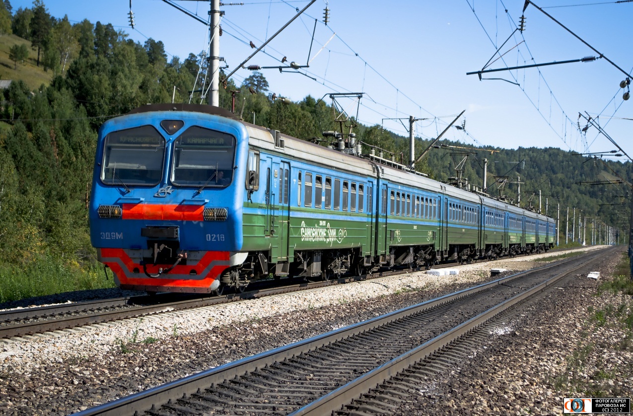 | Электропоезд ЭД9М-0218 "Енисейские Зори" сообщением №6413 Камарчага - Красноярск, перегон Сорокино - Красноярск-Восточный, Красноярский край Автор: Михаил Азарцев | Фото сделано 2.IX.2012, опубликовано 4.IX.2012.