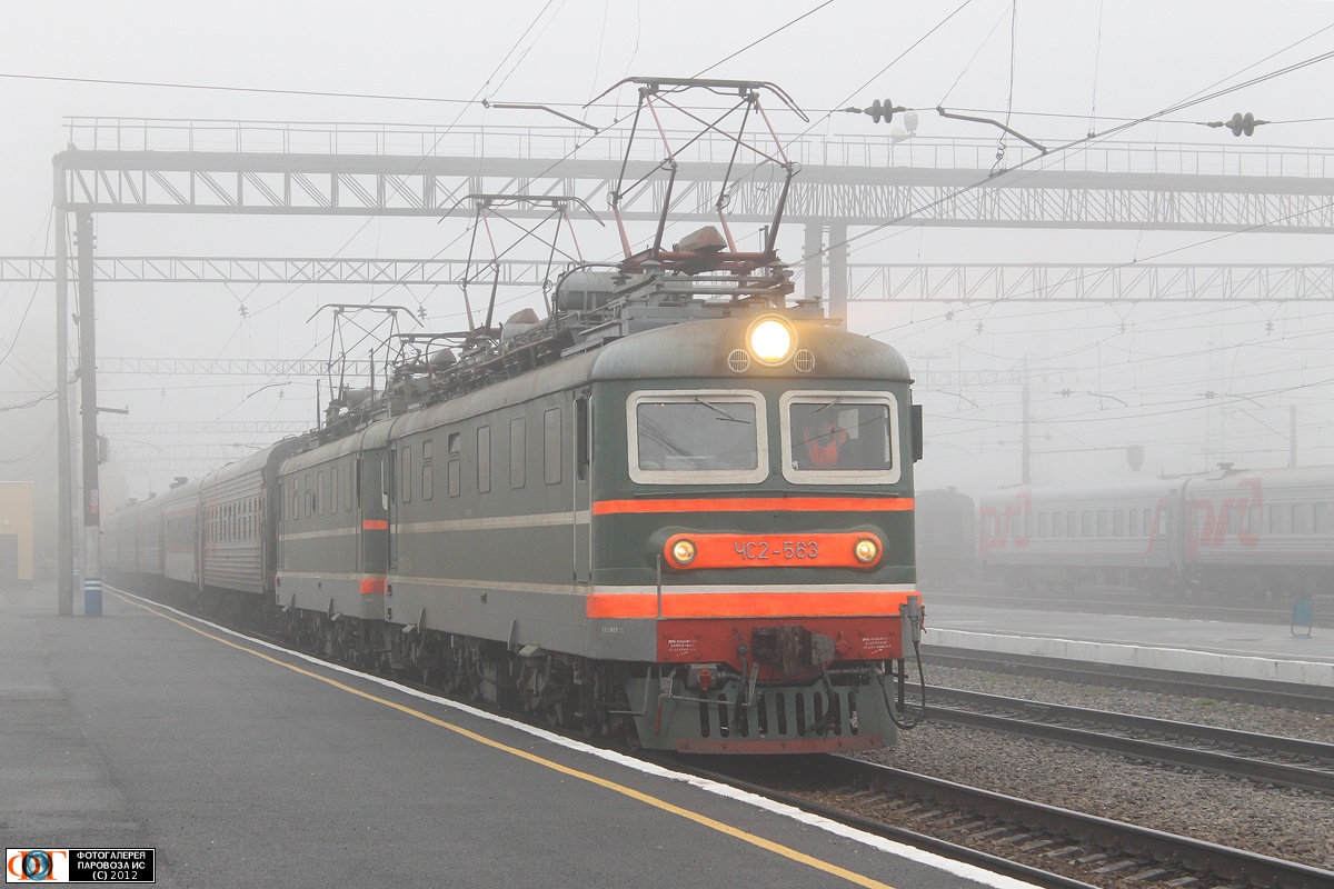 | Электровозы ЧС2-563 и ЧС2-818 с пассажирским поездом Приобье - Екатеринбург, ст. Нижний Тагил, Свердловская обл. Автор: Александр Елькин | Фото сделано 16.IX.2012, опубликовано 22.IX.2012.