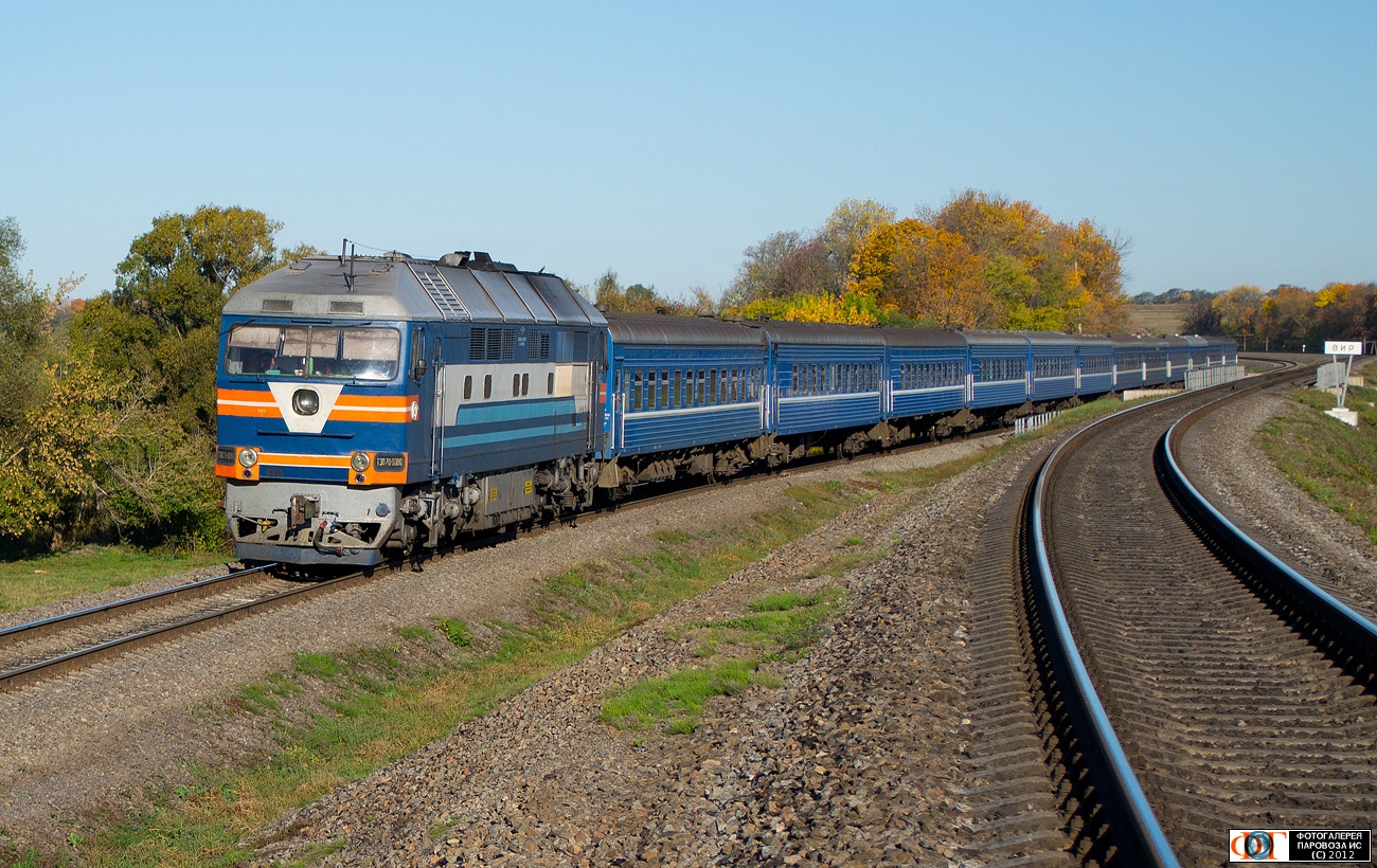 | Тепловоз ТЭП70-0080 с поездом №356 Минск - Кисловодск, перегон Виры - Амбары, Сумская обл. Автор: Роман К. | Фото сделано 24.IX.2012, опубликовано 6.X.2012.