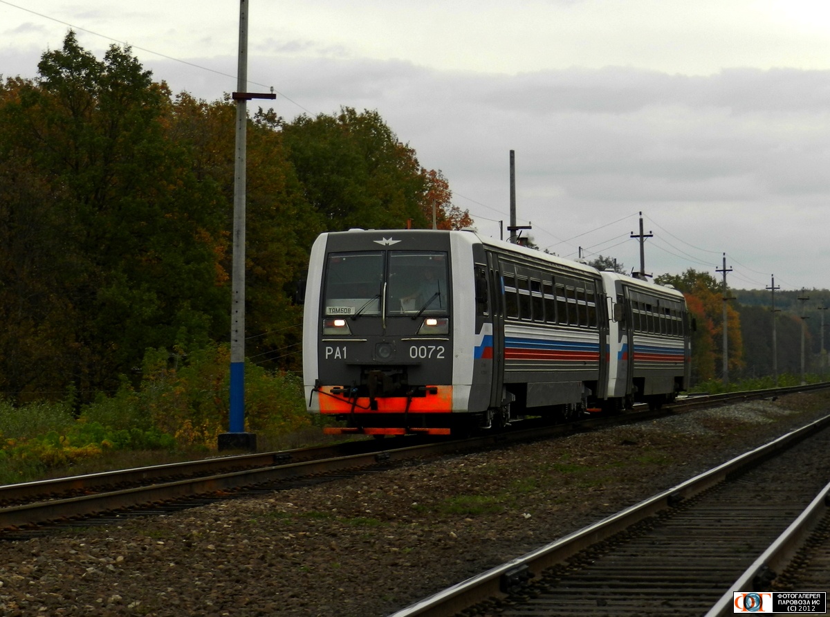 | Рельсовый автобус РА1-0072 следует пригородным поездом Кирсанов - Тамбов, перегон Рада - Цна ЮВЖД, Тамбовская обл. Автор: Александр | Фото сделано 30.IX.2012, опубликовано 8.X.2012.