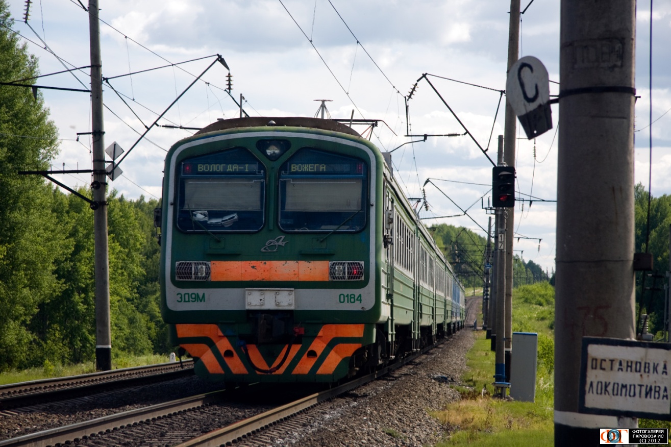 | Электропоезд ЭД9М-0184 на перегоне Кадниковский - Пундуга, Вологодская обл. Автор: Полянский Евгений | Фото сделано 6.VII.2012, опубликовано 23.XII.2012.