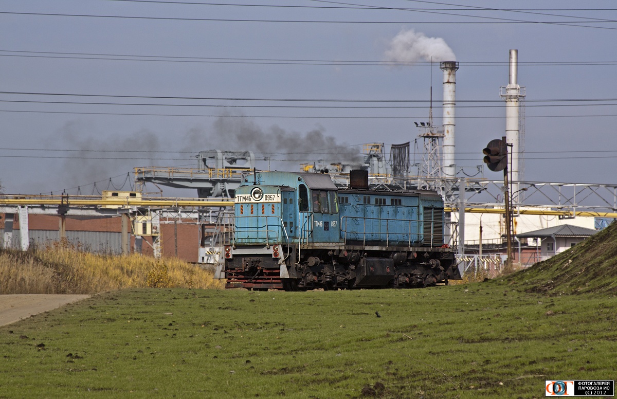 | Тепловоз ТГМ4Б-0957, промзона г. Верхняя Пышма, Свердловская обл. Автор: кнут | Фото сделано 9.X.2012, опубликовано 26.XI.2012.