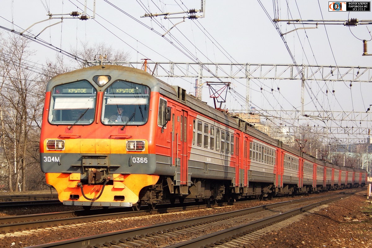 | Электропоезд ЭД4М-0366, перегон Кусково - Москва-Пассажирская-Курская, Москва Автор: Анатолий Клубков | Фото сделано 15.IV.2012, опубликовано 22.XI.2012.