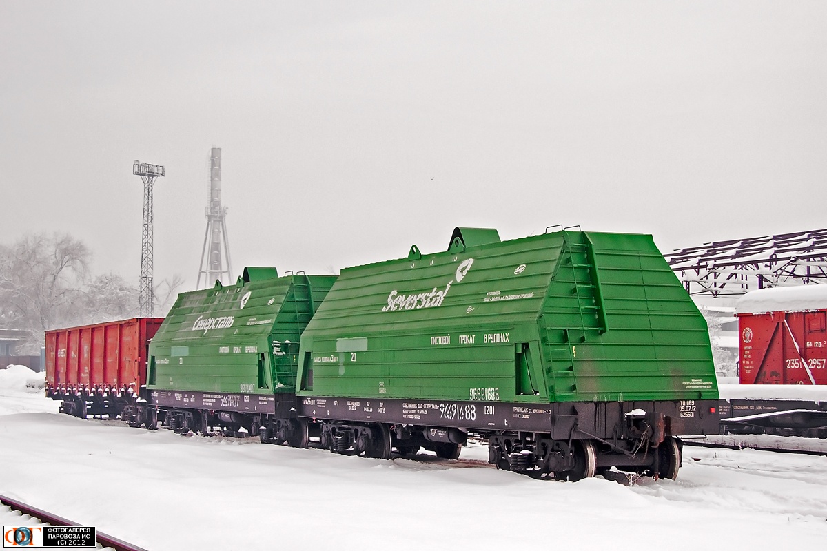 | Вагон для перевозки листового проката в рулонах (станция Череповец) на станции Алма-Ата-I, Алма-Ата Автор: Alexandr Zaleskiy | Фото сделано 3.XII.2012, опубликовано 20.XII.2012.