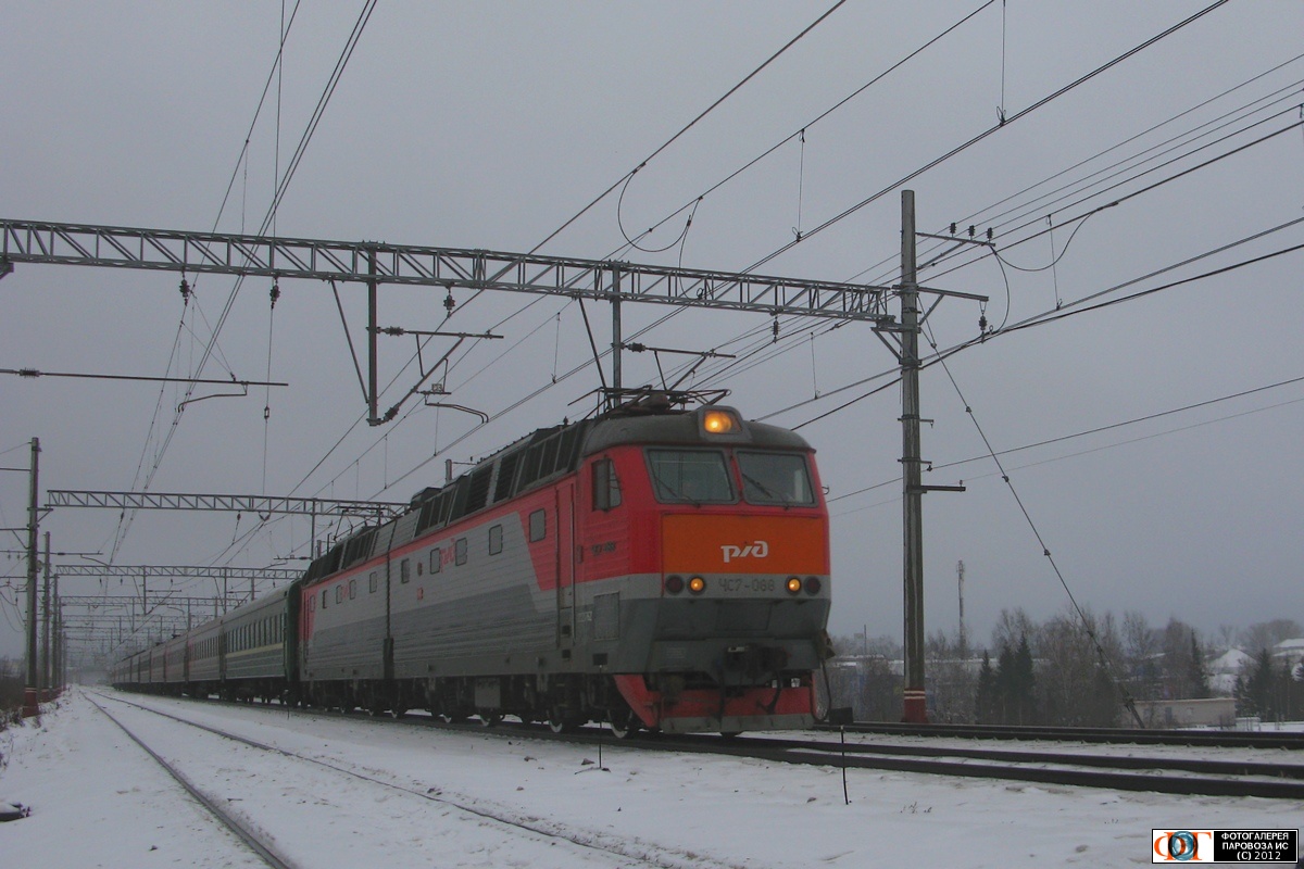 | Электровоз ЧС7-088, ст. Подсолнечная, ОКТ, Московская обл. Автор: ЯР | Фото сделано 28.XII.2012, опубликовано 29.XII.2012.