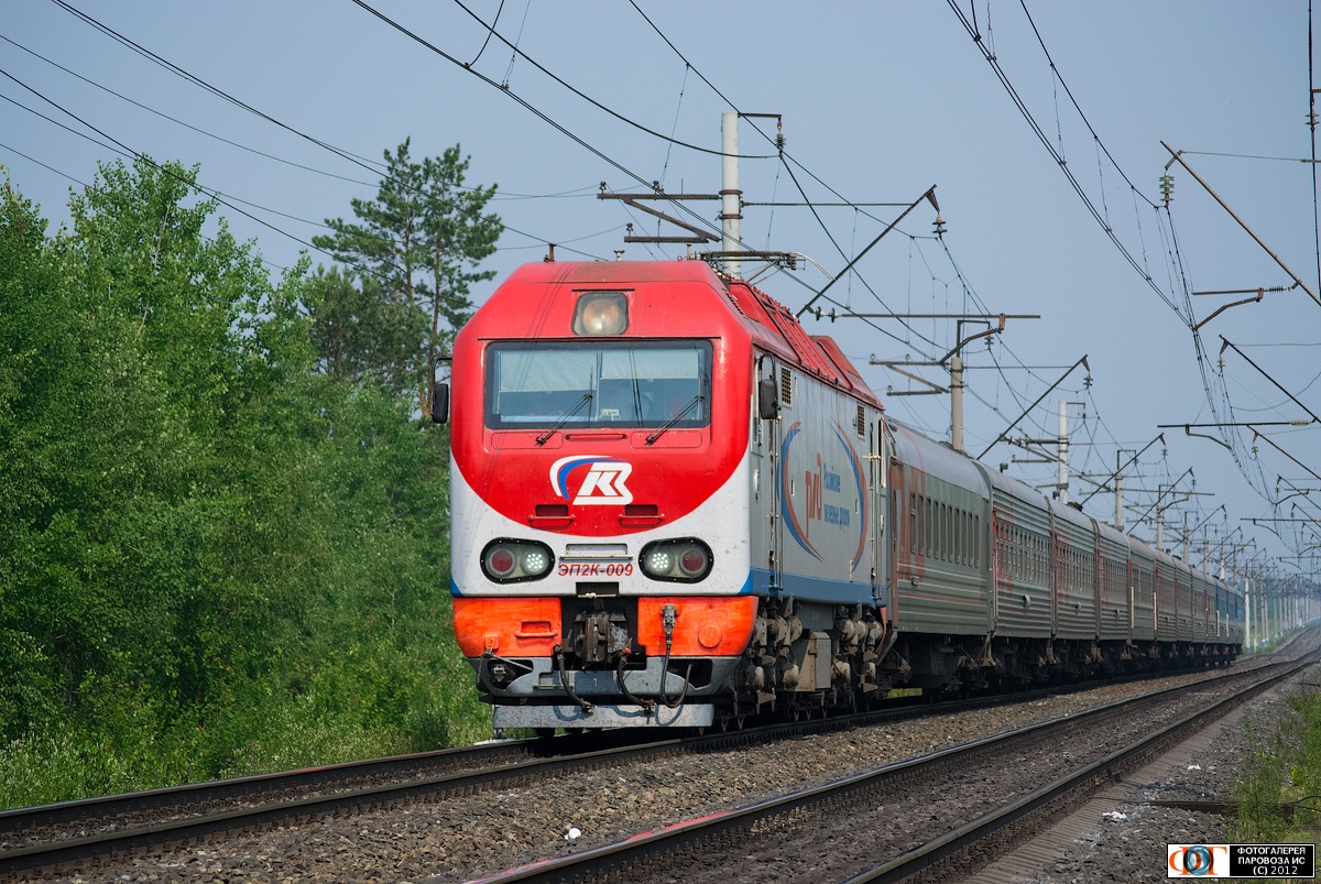 | Электровоз ЭП2К-009 на перегоне Войновка - Озеро Андреевское, Тюменская обл. Автор: Зайнуллин Ринат | Фото сделано 30.VI.2012, опубликовано 23.I.2013.
