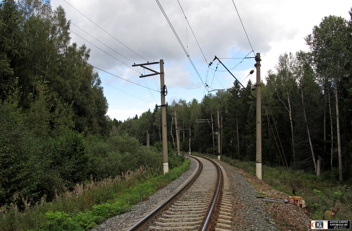| Перегон Иванцево - Костино, вид в сторону Драчёво, Московская обл. Автор: Игорь Абросимов | Фото сделано 26.VIII.2012, опубликовано 27.I.2013.