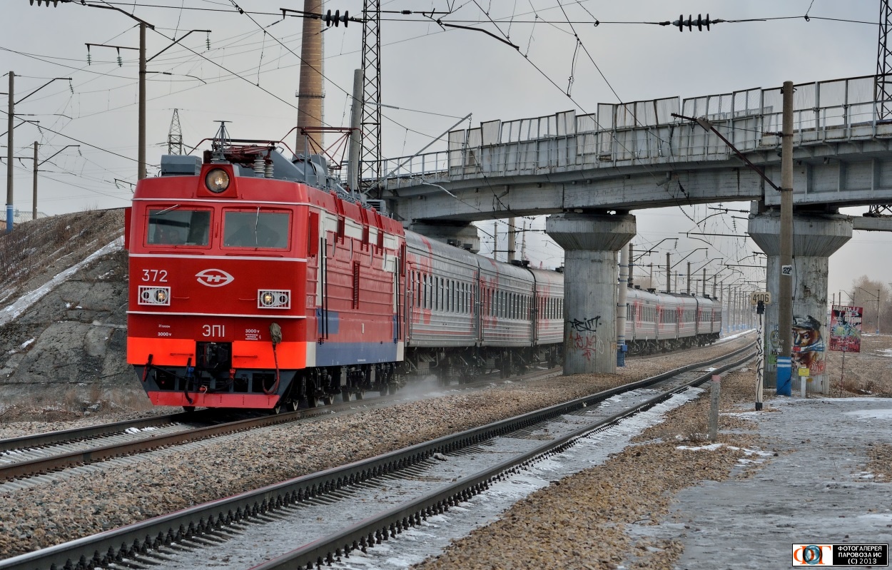 | Электровоз ЭП1-372 с пассажирским поездом №133 Владивосток - Пенза, участок Первомайская - Студенческая, перегон Злобино - Енисей , Красноярский край Автор: Михаил Азарцев | Фото сделано 11.III.2013, опубликовано 12.III.2013.
