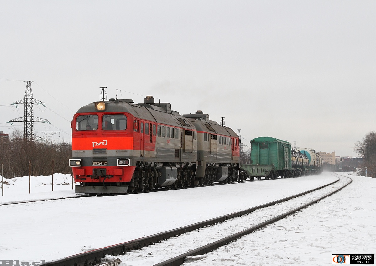 | Тепловоз 2М62У-0132 с грузовым поездом следует по перегону Ростокино - Владыкино, МОЖД, Москва Автор: Black | Фото сделано 23.III.2013, опубликовано 24.III.2013.