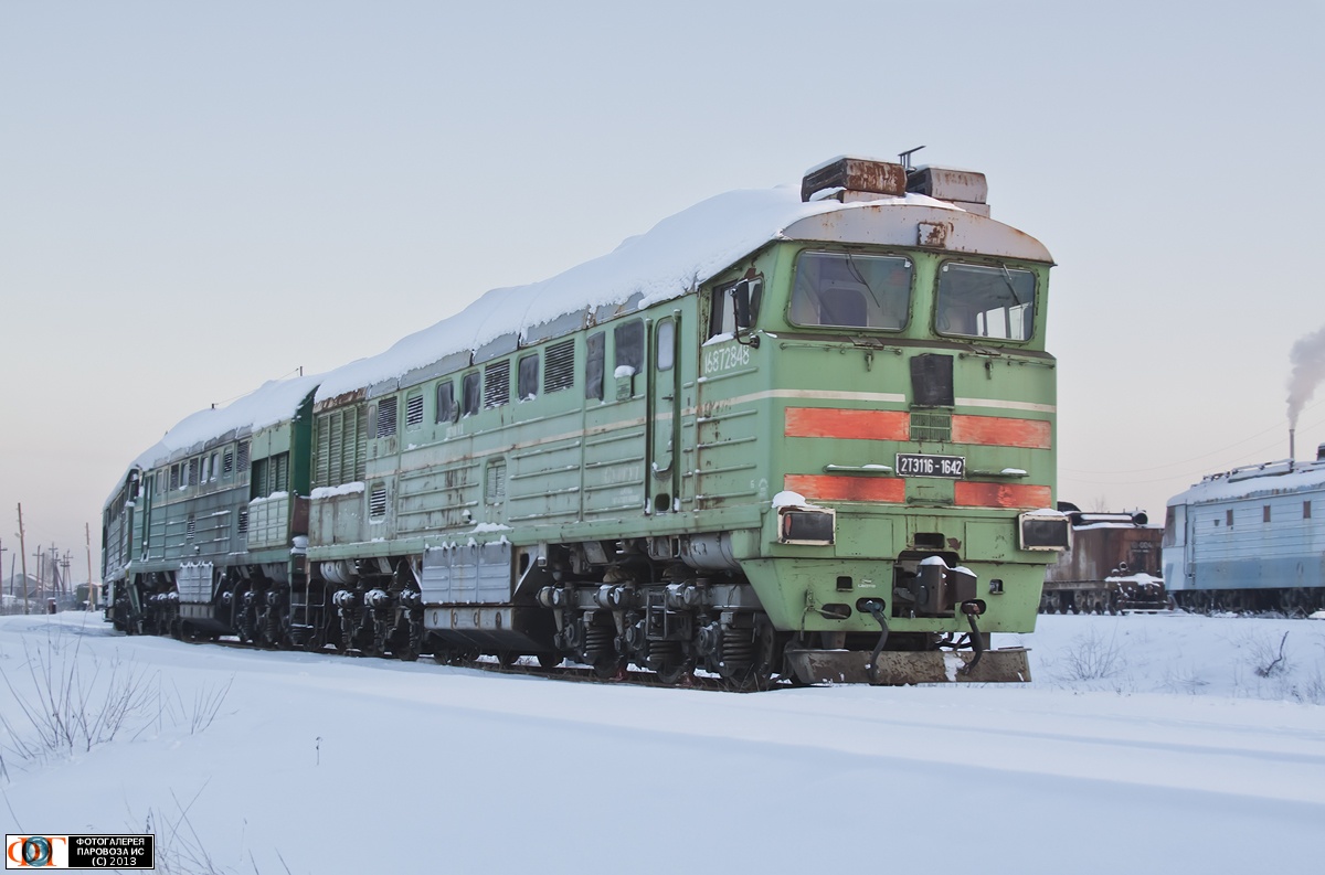 | Тепловоз 2ТЭ116-1642 (секция Б), база запаса Дружинино, Свердловская обл. Автор: кнут | Фото сделано 22.XII.2012, опубликовано 26.III.2013.