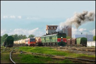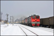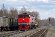 | Тепловоз 2ТЭ10М-2255 с грузовым поездом на станции Помары, Марий Эл Автор: albo | Фото сделано 17.VIII.2011, опубликовано 17.VI.2013.